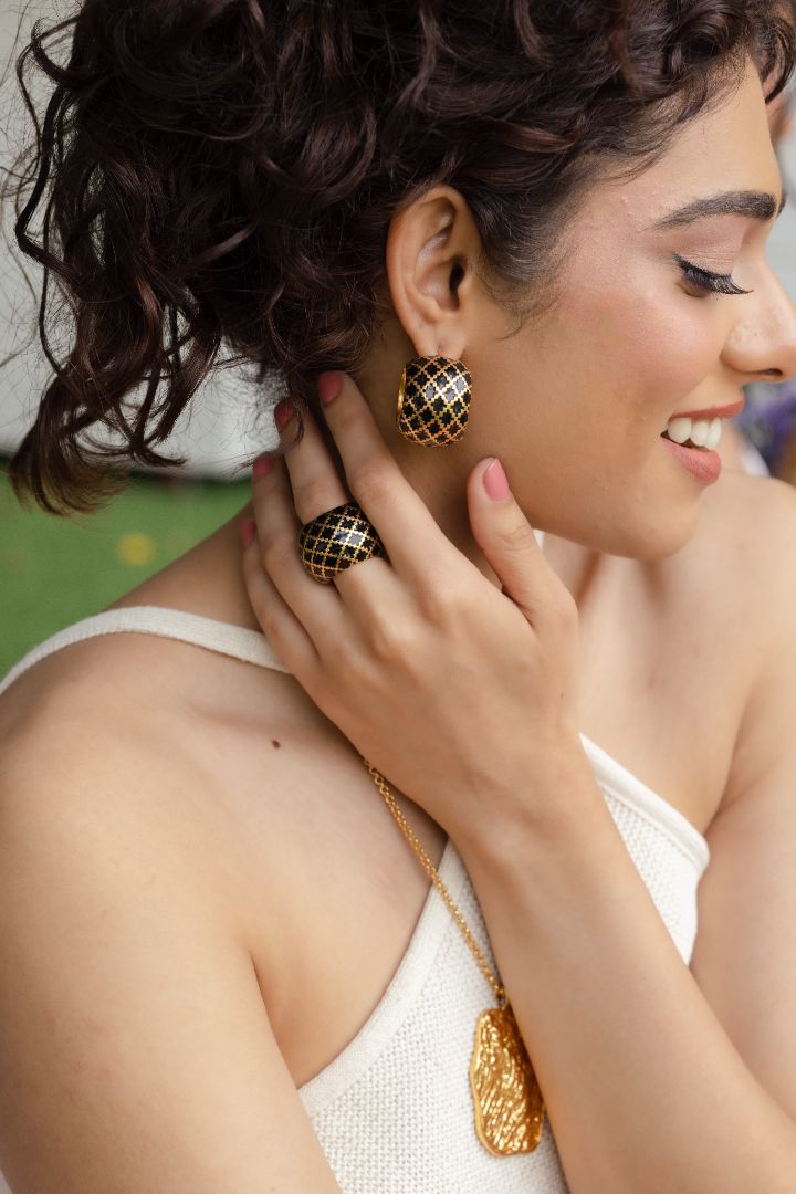 Checkered earrings 2.0—a refined iteration of the beloved classic from our first collection. This updated version features a flat design with sleek checkered lines, offering a modern twist on the original style. Crafted with precision, the clean lines and minimalist aesthetic make these earrings a versatile accessory for any occasion.