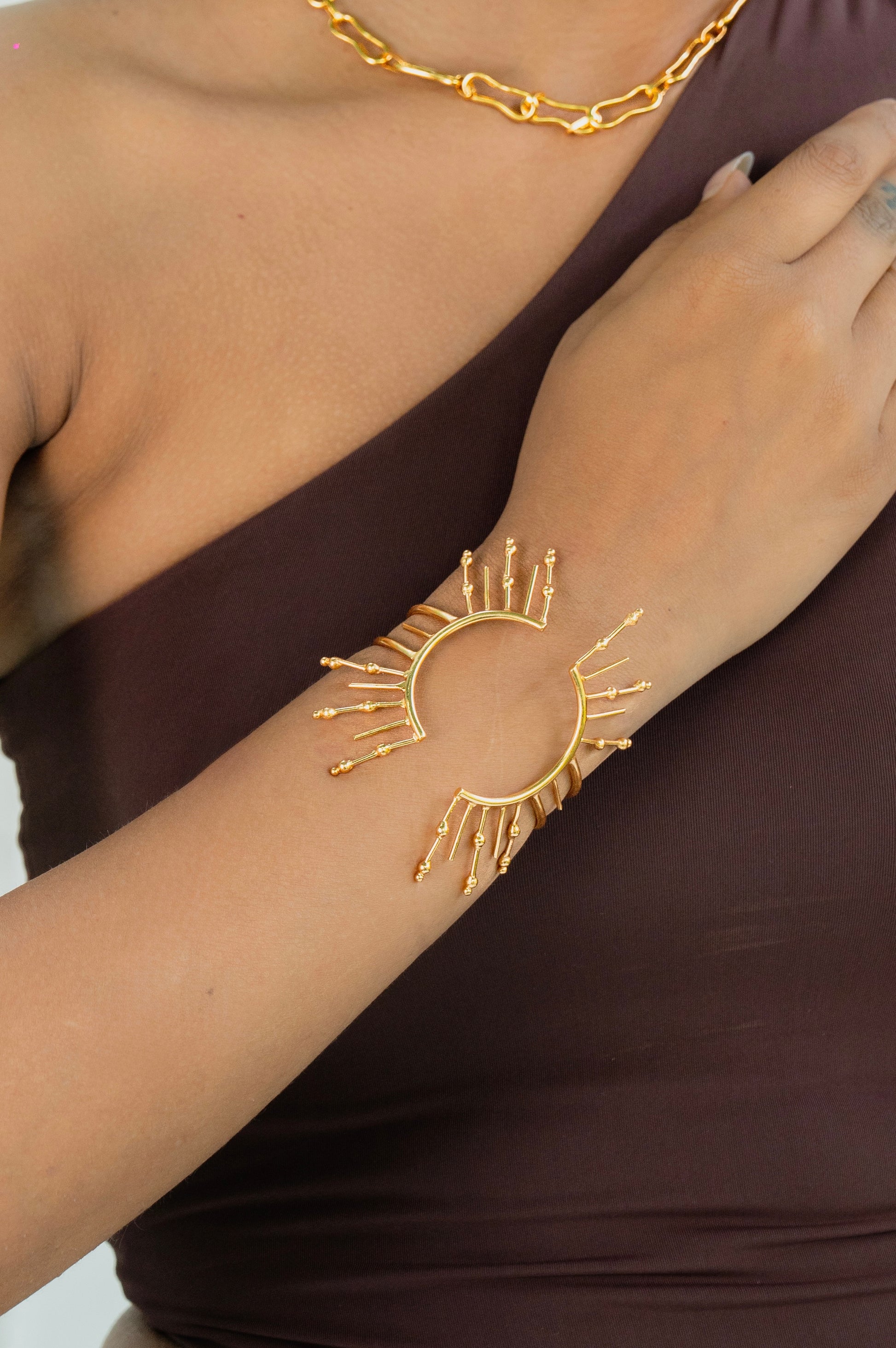 A bold statement that’s uniquely Saka. Every line, dot, and detail of our signature logo has been intricately translated into this adjustable wrist cuff.Perfect for adding a modern, graphic edge to both everyday and festive looks.